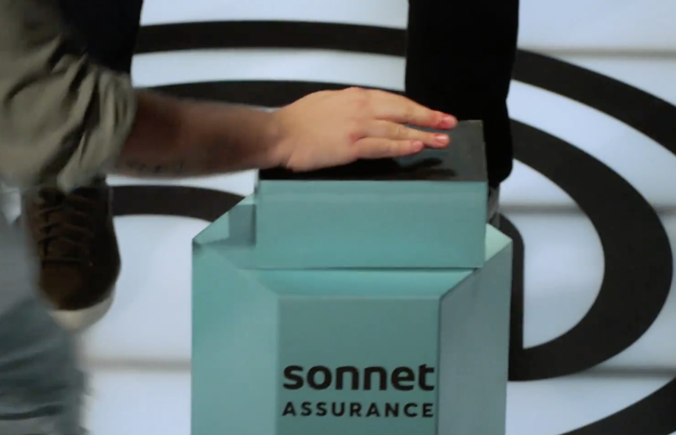 Toutefois, cette fois-ci, les boîtes mystères ne sont pas la seule surprise à éveiller la curiosité des candidats: sur un étrange bloc trône un mystérieux bouton rouge estampillé Sommet Assurance.