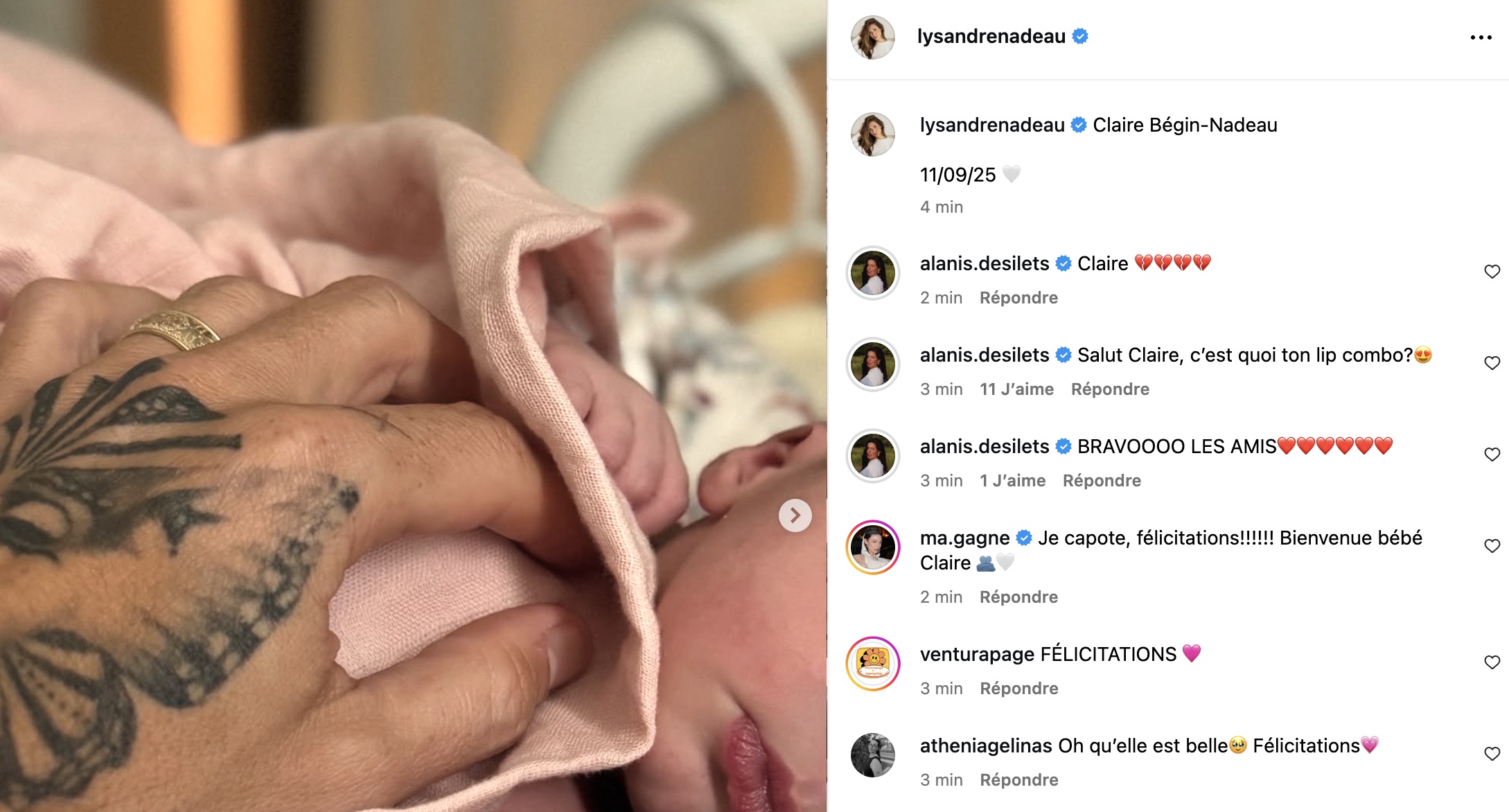 Voilà que Lysandre partage les toutes premières photos de son bébé, annonçant en même temps la venue de ce petit ange qui vient agrandir et illuminer la famille.