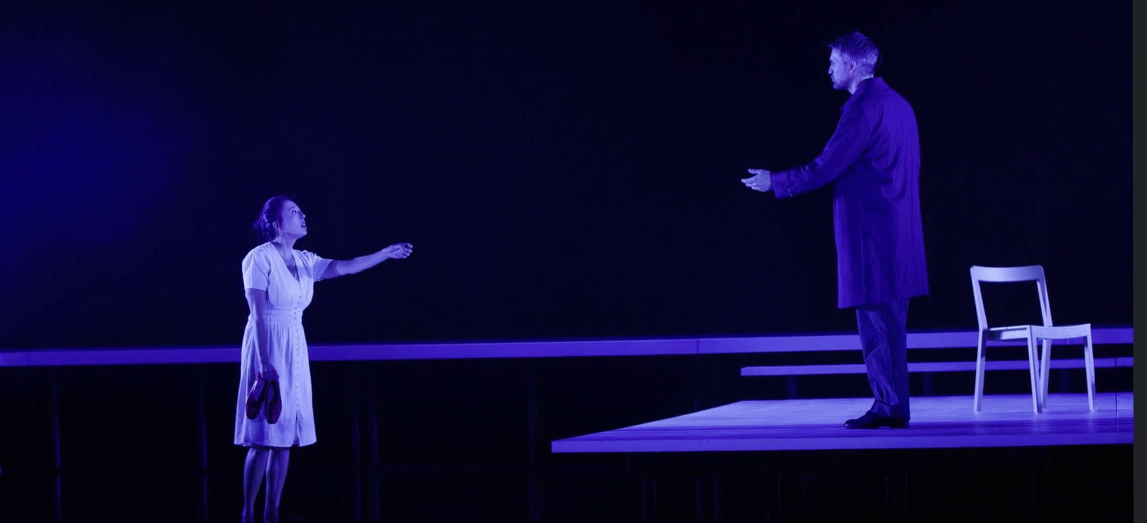Le jeu des acteurs était clair et juste, sans artifices matériels pour l’amplifier : ils étaient vêtus de costumes sobres, aux teintes neutres, et habitaient un décor moderne et épuré.