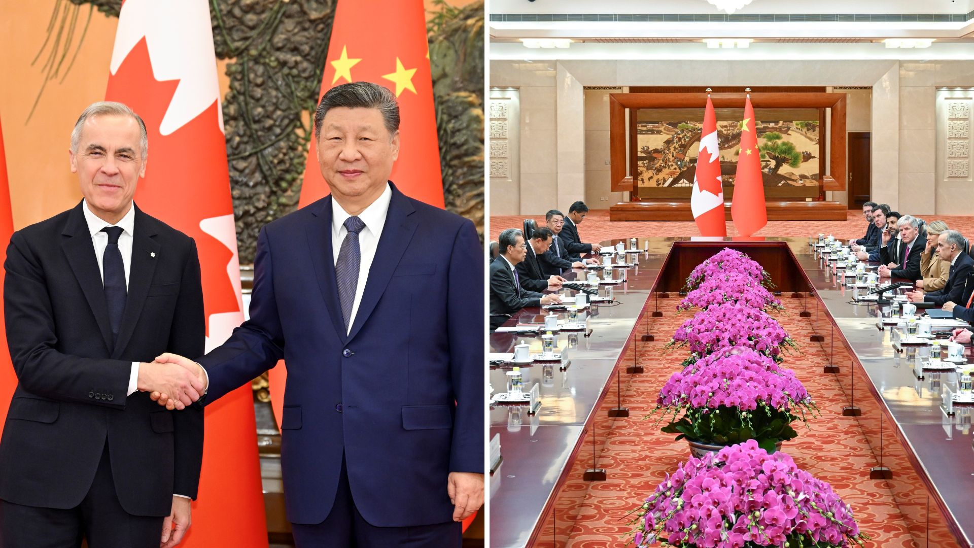 Chinese President Xi Jinping meets with Canadian Prime Minister Mark Carney at the Great Hall of the People in Beijing, capital of China, Jan. 16, 2026. (Photo by Xie Huanchi/Xinhua via Getty Images)BEIJING, CHINA – JANUARY 16: Canada’s Prime Minister Mark Carney (C) arrives for a meeting with Chinese President Xi Jinping at the Great Hall of the People on January 16, 2026 in Beijing, China. (Photo by Vincent Thian – Pool/Getty Images)BEIJING, CHINA – JANUARY 16: Chinese President Xi Jinping (3rd-L) and Canada’s Prime Minister Mark Carney (2nd-R) meet at the Great Hall of the People on January 16, 2026 in Beijing, China. (Photo by Vincent Thian – Pool/Getty Images)BEIJING, CHINA – JULY 24: Chinese Premier Li Qiang (centre), speaks during opening remarks meeting with European Commission President Ursula von der Leyen during the China EU summit at Great Hall of People on July 24, 2025 in Beijing, China. (Photo by Mahesh Kumar A. – Pool/Getty Images)