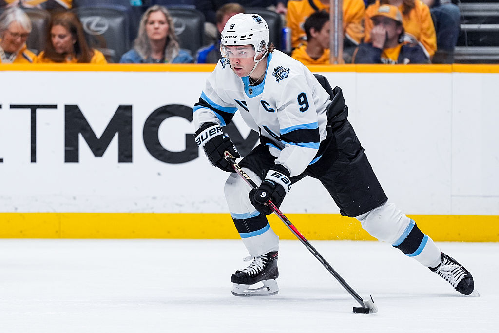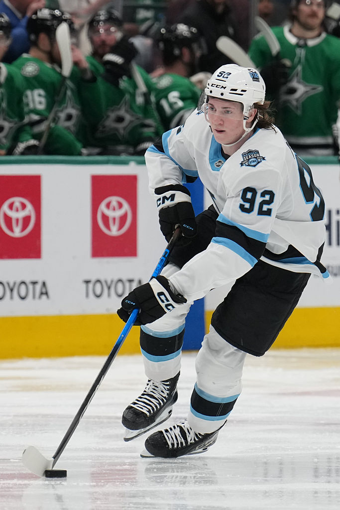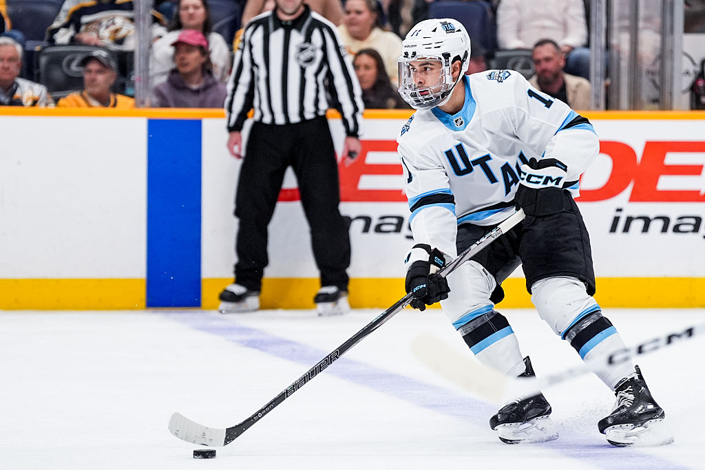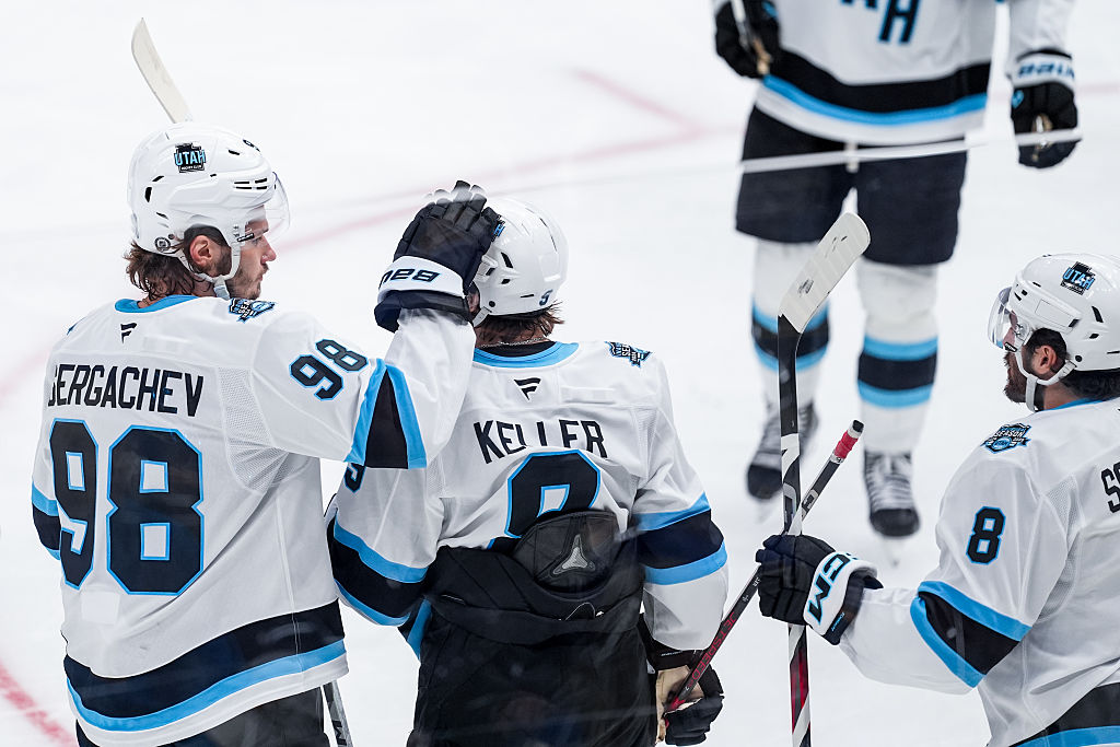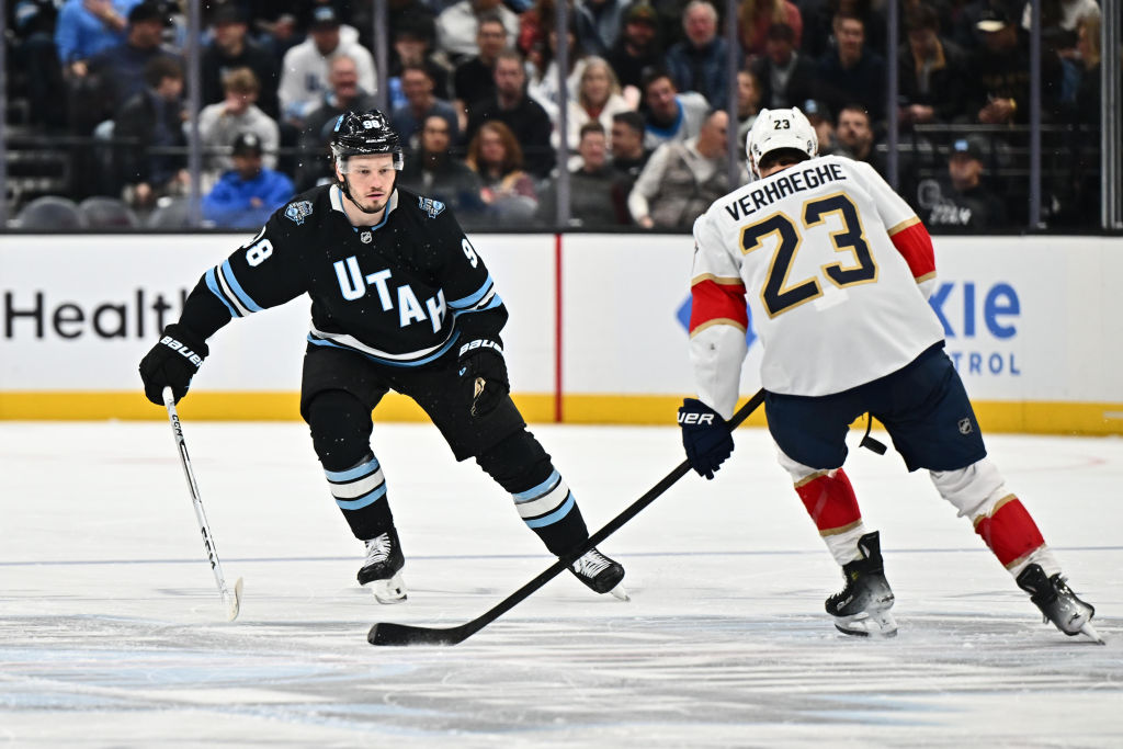 SALT LAKE CITY, UTAH - 08 JANVIER : Mikhail Sergachev #98 du Utah Hockey Club patine contre les Florida Panthers le 8 janvier 2025 au Delta Center à Salt Lake City, Utah. (Photo par Jamie Sabau/NHLI via Getty Images)