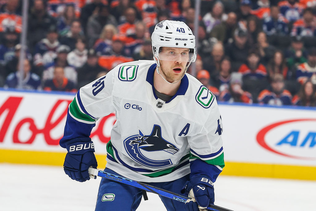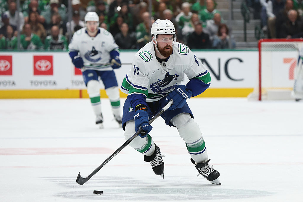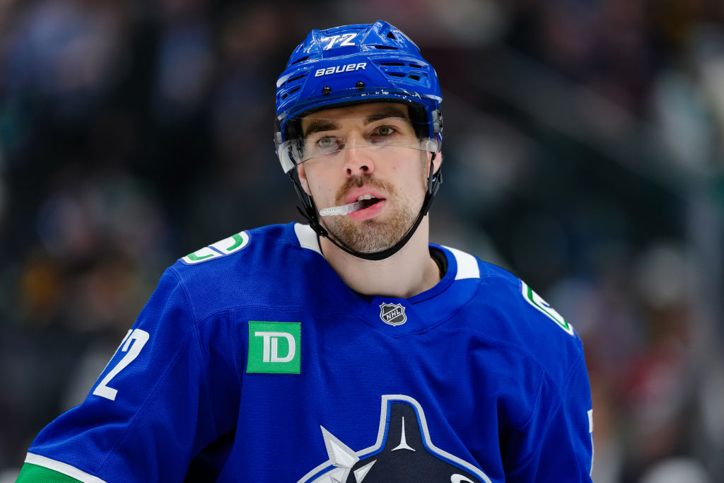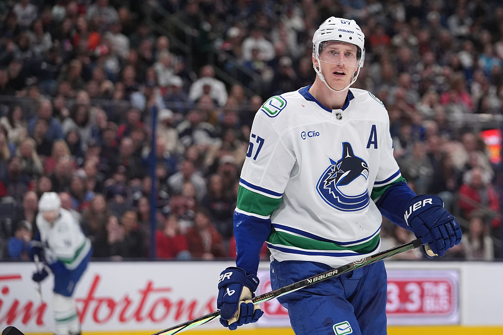 CHICAGO, ILLINOIS - 22 OCTOBRE : Quinn Hughes #43 des Canucks de Vancouver patine avec la rondelle contre les Blackhawks de Chicago durant la première période au United Center le 22 octobre 2024 à Chicago, Illinois. (Photo par Michael Reaves/Getty Images)