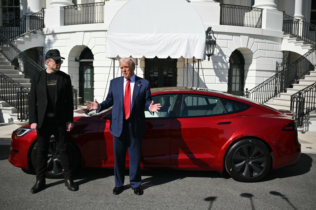 WASHINGTON, DC – FEBRUARY 11: Elon Musk delivers remarks as he joins U.S. President Donald Trump for an executive order signing in the Oval Office at the White House on February 11, 2025 in Washington, DC. Trump is to sign an executive order implementing the Department of Government Efficiency’s (DOGE) “workforce optimization initiative,” which, according to Trump, will encourage agencies to limit hiring and reduce the size of the federal government. (Photo by Andrew Harnik/Getty Images)HOLMES-CHAPEL, ENGLAND – OCTOBER 16: Elon Musk account on Twitter X is displayed on a smartphone on October 16, 2023 in Holmes Chapel, United Kingdom. (Photo by Nathan Stirk/Getty Images)ALHAMBRA, CALIFORNIA – JANUARY 02: The Tesla logo displayed at a Tesla dealership on January 2, 2025 in Alhambra, California. The electric vehicle (EV) company reported its first annual sales dip in 2024, down one percent from 2023. (Photo by Mario Tama/Getty Images)US President Donald Trump and Tesla CEO Elon Musk speak to the press as they stand next to a Tesla vehicle on the South Portico of the White House on March 11, 2025 in Washington, DC. (Photo by Mandel NGAN / AFP) (Photo by MANDEL NGAN/AFP via Getty Images)HAI AN, CHINA – JUNE 16: An employee deals with U.S. one-hundred dollar banknotes at a bank on June 16, 2022 in Hai an, Nantong City, Jiangsu Province of China. (Photo by Xu Jinbai/VCG via Getty Images)LANCASTER, PENNSYLVANIA – OCTOBER 26: SpaceX and Tesla founder Elon Musk speaks during an America PAC town hall on October 26, 2024 in Lancaster, Pennsylvania. Musk has donated more than $75 million to America PAC, which he co-founded with fellow Silicon Valley venture capitalists and tech businessmen to support Republican presidential nominee, former U.S. President Donald Trump. (Photo by Samuel Corum/Getty Images)
