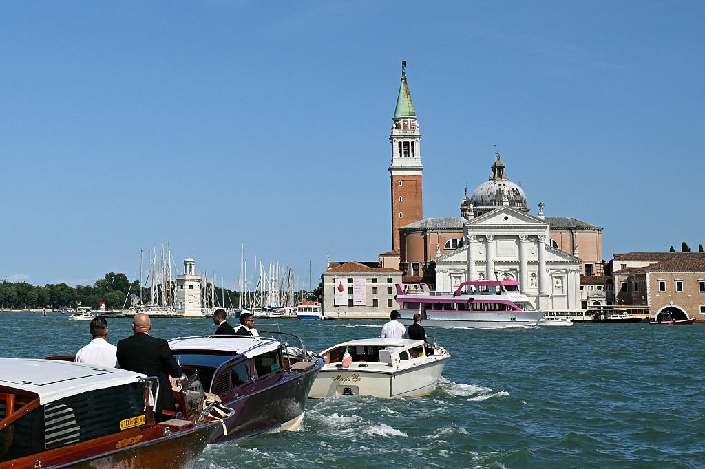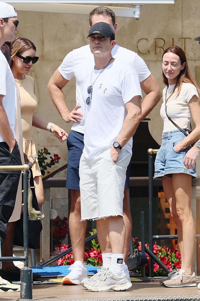 On y voit Robert F. Kennedy Jr., secrétaire à la Santé des États-Unis, en train de sortir d’un salon de bronzage de la chaîne Palm Beach Tan, entouré de son équipe de sécurité.