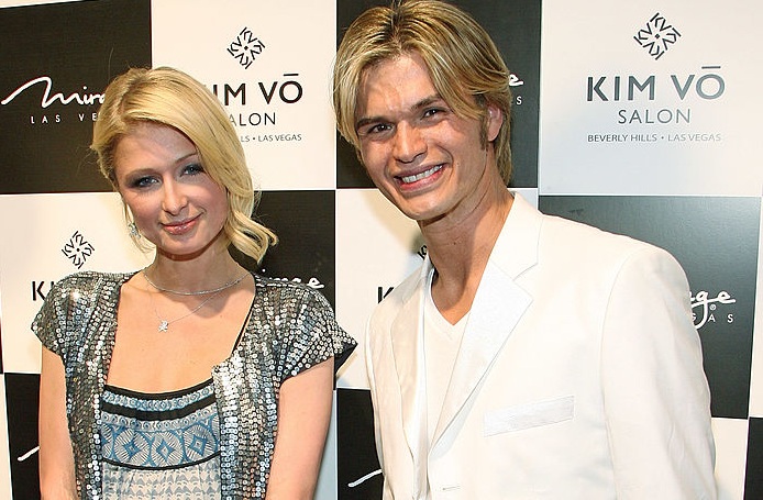 LAS VEGAS – 7. MÄRZ: Paris Hilton (links) und Haarcolorist Kim Vo bei der Eröffnung des Kim Vo Salons im Mirage Hotel & Casino am 7. März 2008 in Las Vegas, Nevada. (Foto: Ethan Miller/Getty Images für MGM/Mirage)