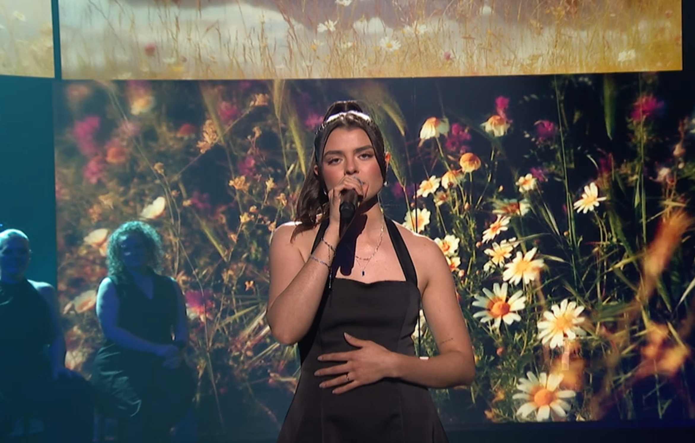 Il évoquait en effet ce moment bouleversant où sa maman, submergée par l’émotion, regardait sa fille chanter avec force et dignité. Debout sur scène, Rosemarie livrait une performance magistrale tout en portant le poids d’un deuil immense.