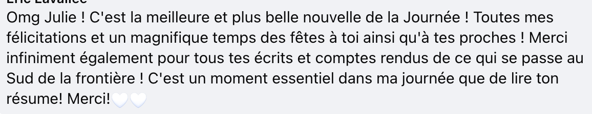 Sous la publication, les commentaires se sont rapidement multipliés: sa communauté a littéralement fait pleuvoir une avalanche de messages d’amour, d’encouragement et de soutien, témoignant à quel point Julie est entourée et appréciée.
