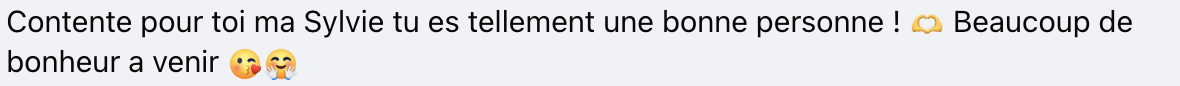 «Contente pour toi, ma Sylvie. Tu es tellement une bonne personne! Beaucoup de bonheur à venir», commente une personne.