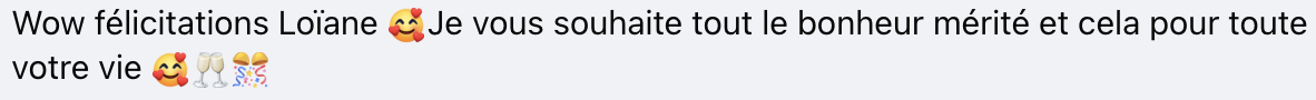 «Wow, félicitations Loïane. Je vous souhaite tout le bonheur mérité et cela pour toute votre vie», commente un autre.