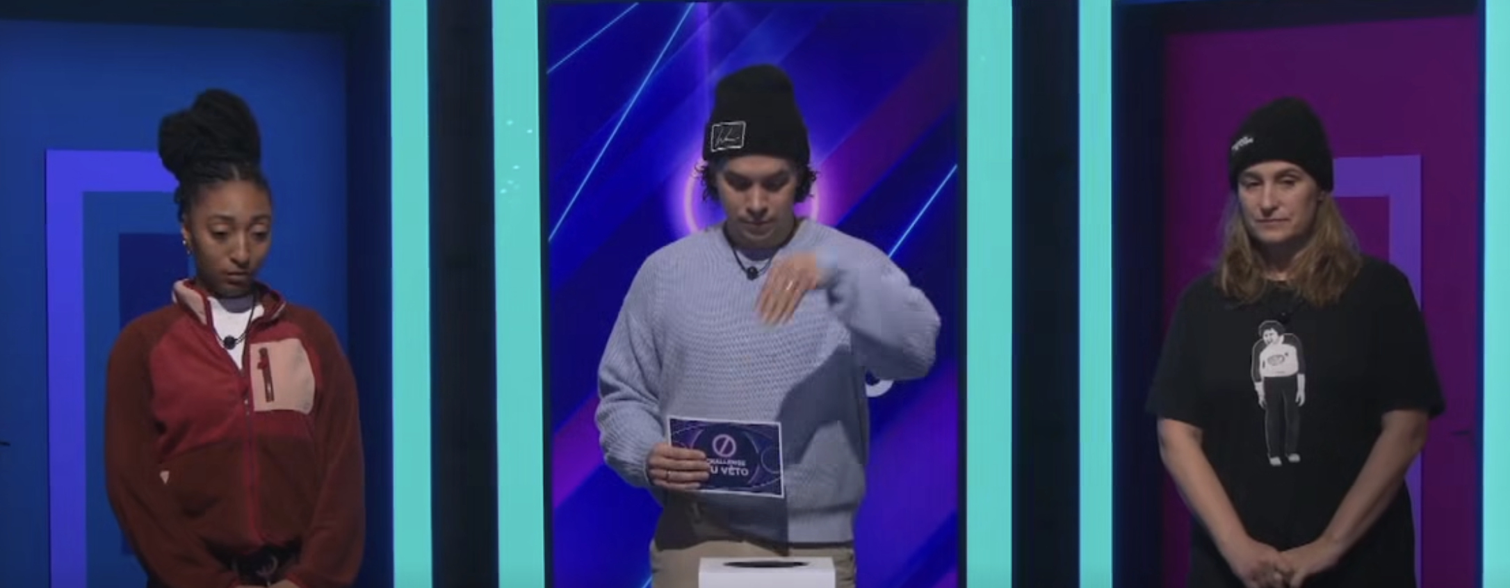 Tous les joueurs se réunissent ensuite dans le salon pour la pige du véto, un salon qui fait aussi office de chambre pour Kate, rappelons-le, puisqu’elle n’a toujours pas obtenu de vraie chambre. Pour l’occasion, Jean-François fait une entrée remarquée, vêtu de sa robe de chambre. Il prétend vouloir se reposer et atteindre enfin une détente bien méritée… mais le destin en décidera peut-être autrement.