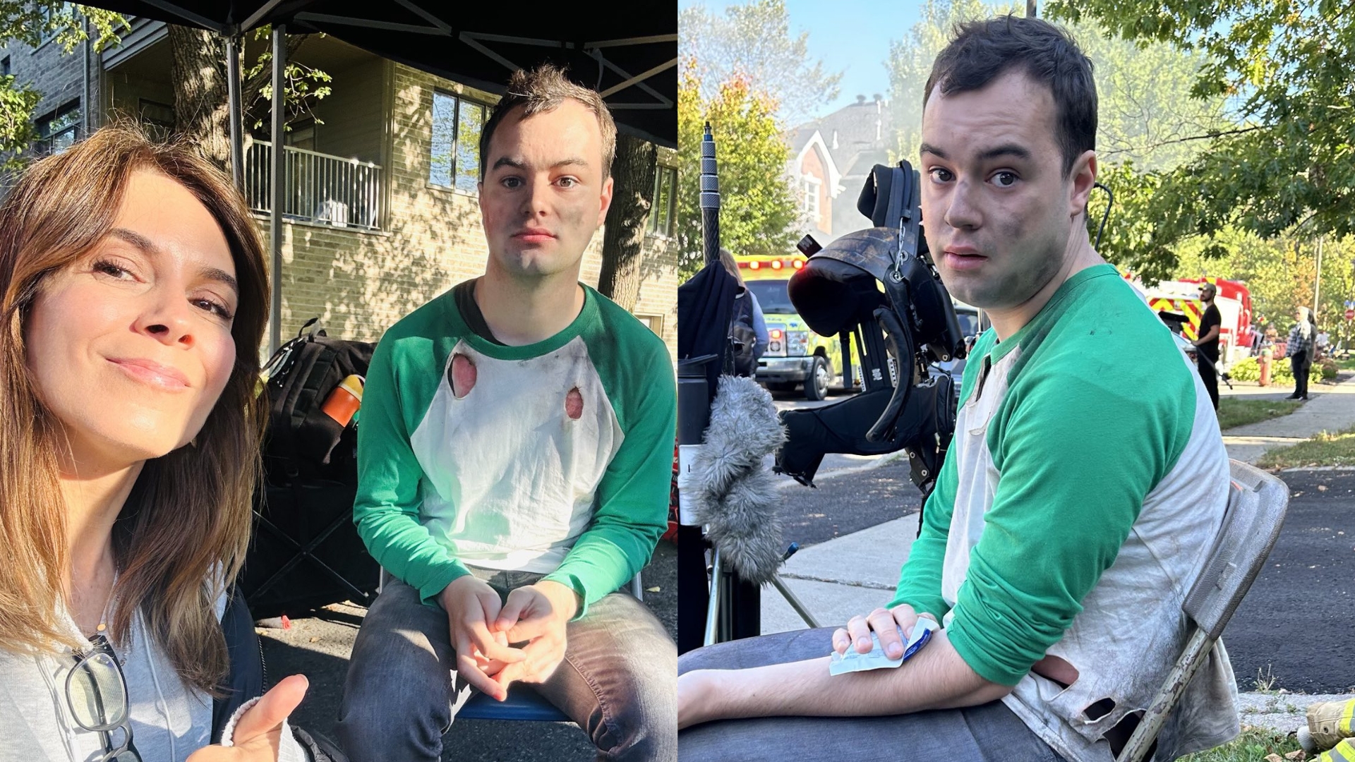 «Anecdote de tournage. Le tournage le plus difficile pour Benjamin dans l’épisode de cette semaine n’a pas été d’être couché dans un lit pendant de longues heures, mais bien la scène de l’incendie de la maison… Alors qu’il attendait calmement à l’extérieur pour tourner sa scène, une abeille s’est posée sur son bras. Il a tenté d’avertir la réalisatrice, Julie Perreault, mais malheureusement, l’abeille l’a piqué. Julie et Benjamin m’ont alors fait un FaceTime pour lui changer les idées, pendant que l’équipe, d’une grande bienveillance, lui apportait de la glace pour soulager la douleur. Benjamin ne pleure presque jamais, voir jamais, mais cette fois-là, de grosses larmes coulaient sur ses joues. Comme quoi, à cet instant précis, le destin de Siméon était bien loin de ses pensées… alors qu’il se demandait surtout: mais quelle mouche m’a donc piqué», peut-on lire en marge de photos de ce moment désagréable.