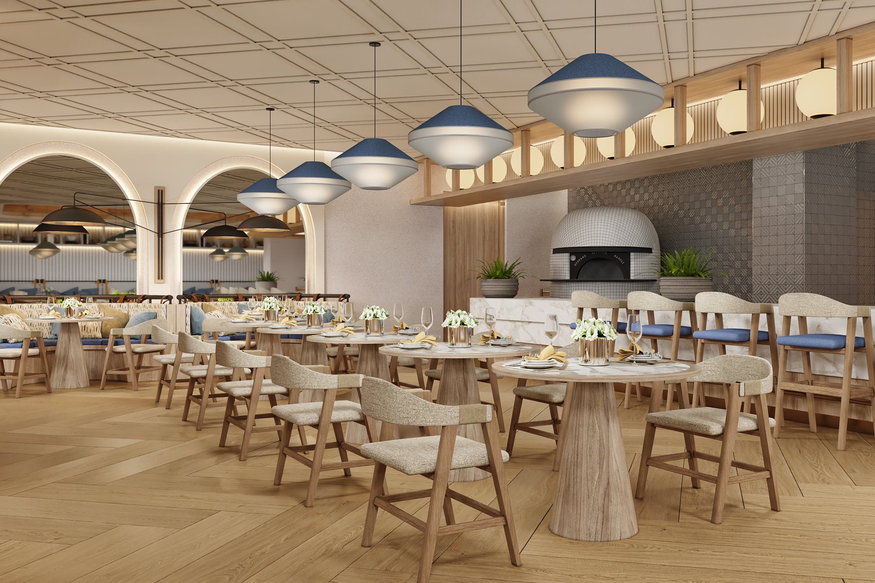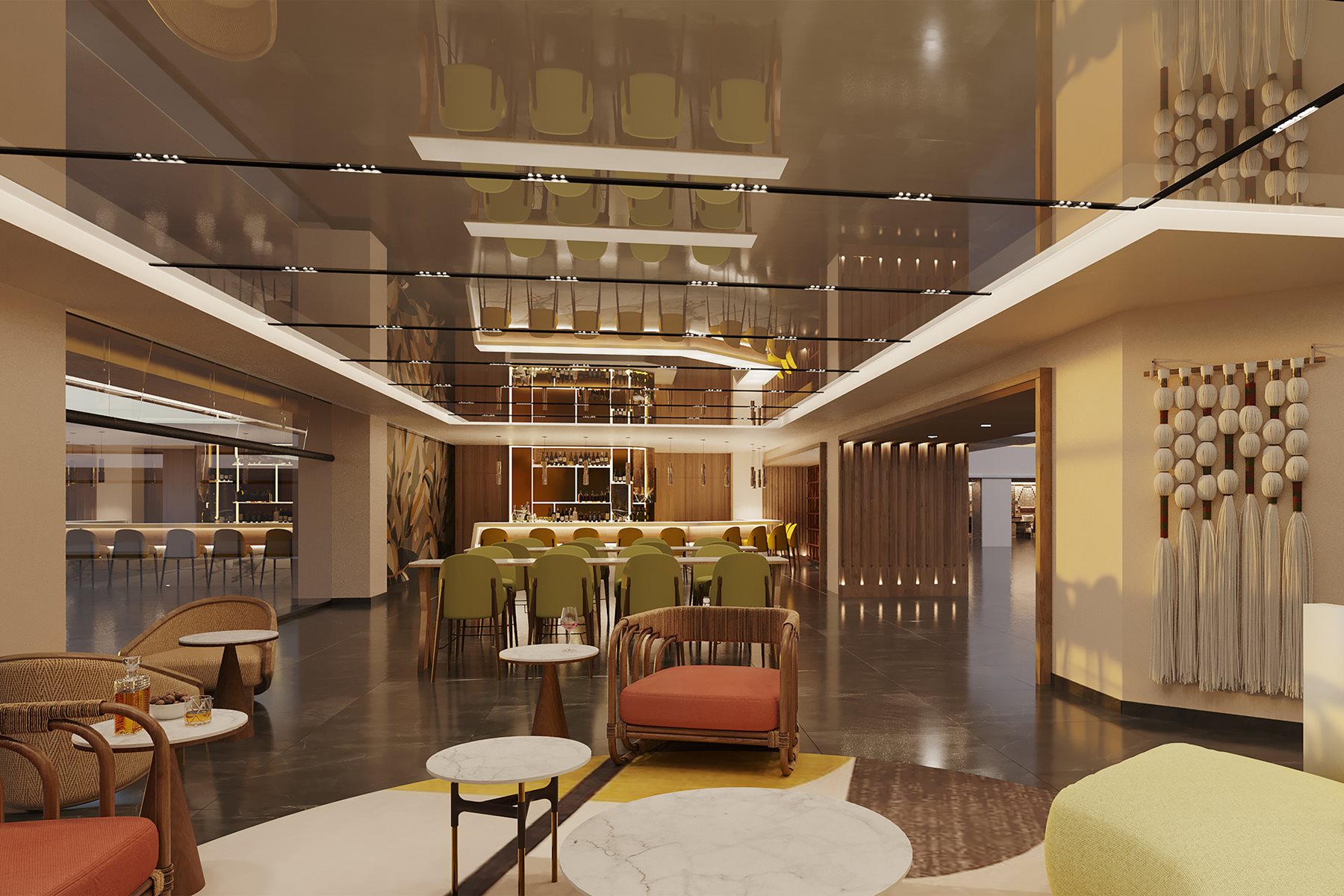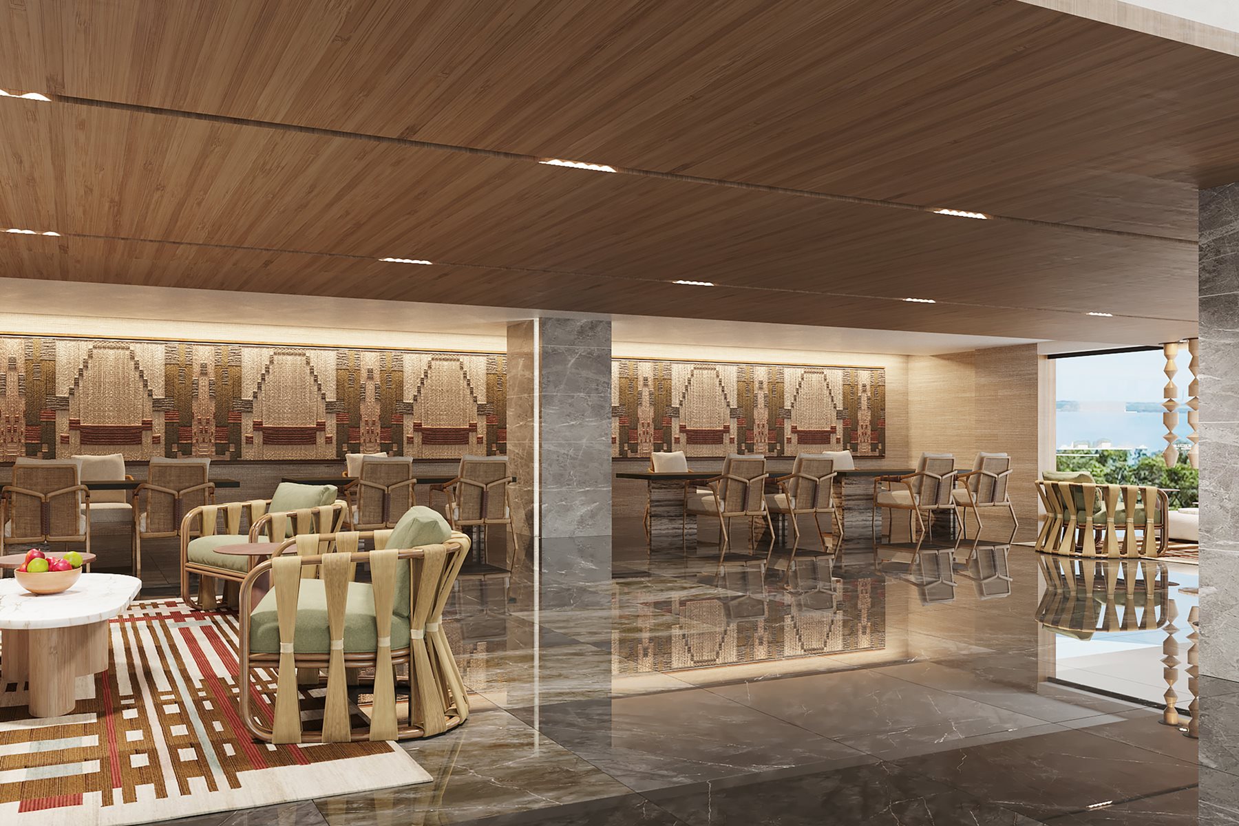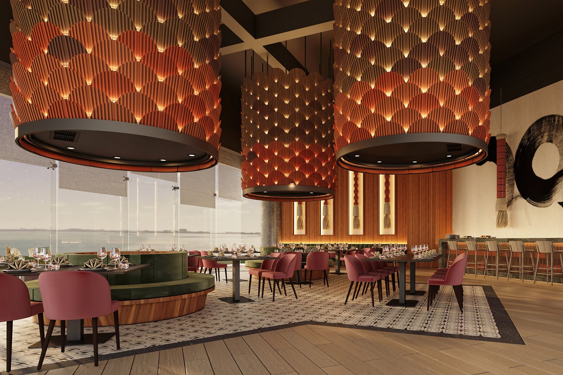 Grâce à ses baies vitrées, le Grand Quai du Port est baigné de lumière naturelle. D’un côté, se dresse une vue imprenable sur le fleuve; de l’autre, des gratte-ciels qui s’élèvent vers le ciel.