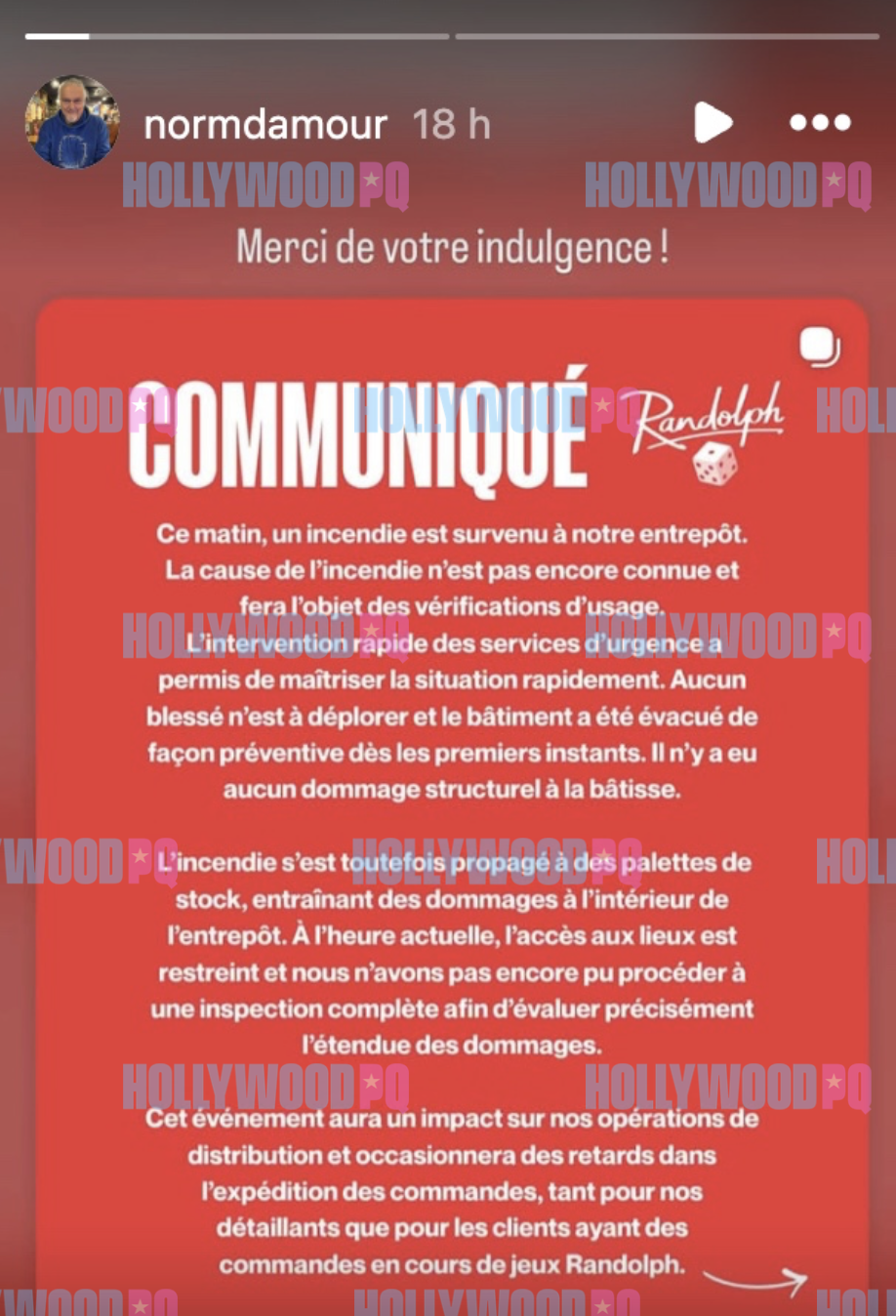 Il est précisé que cet événement aura «un impact» sur leurs opérations de distribution et occasionnera des retards dans l’expédition des commandes, touchant autant les détaillants que les clients ayant des commandes en cours.