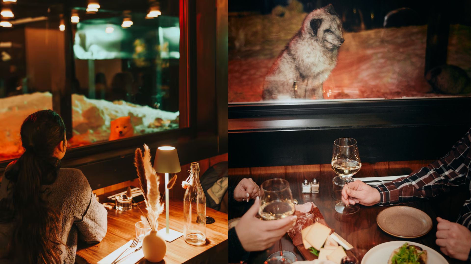 L’expérience se complète avec la présence de renards arctiques, qui circulent à proximité des fenêtres et ajoutent au spectacle. Leur passage régulier transforme le repas en moment d’observation privilégié, où la nature devient le centre de l’attention.